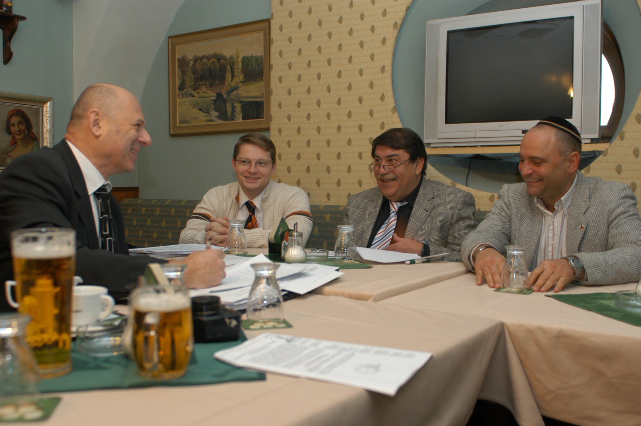 Násleldovala tisková beseda v prostorách hotelu U hada,. V průběhu bude podána informace o stavu rekonstrukce žatecké synagogy. Dalším bodem besedy a přátelského setkání bude diskuse o naší spolupráci s Městem Žatec a dalšími subjekty o portálu Internetové náměstí Žatec.